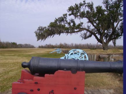 The battlefield in 2008. 32 pounder from the Carolina. The rampart was reconstructed in 1964.